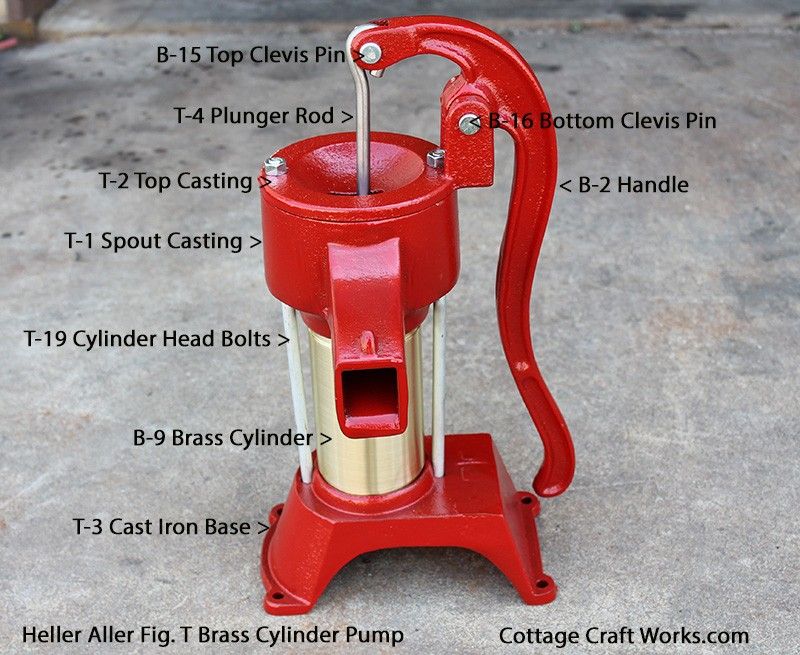 Factory replacement parts to fit Heller Aller Fig. T Brass Cylinder Hand Pitcher Pump.