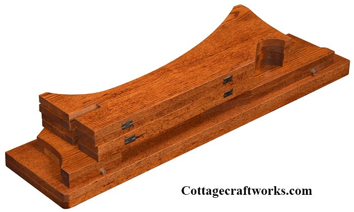 This stunning Singer Featherweight Sewing Table, when assembled, is 38” wide x 18” deep and 29” tall. Fits well in small homes, retirement cottages, assisted living rooms, or for travel to quilting shows. The table quickly disassembles and stacks, to fit in a 39” x 10” x 6-1/2” canvas travel/storage bag included. Easily transports in a small car or stores in a closet when guests come to stay in your guest room. Weighs 40-50 lbs, depending on the wood species.