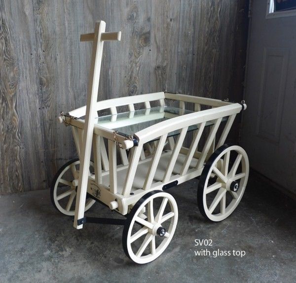 Americans have been using these as décor accents, for both exterior and interior, including adding your own glass tops and using them for coffee and end tables. For exterior displays, these goat carts are most popular during the fall to display pumpkins and colorful squash.